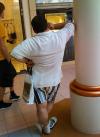To reiterate, what interests Sternfeld most is the actuality of people within this simulation of public space. We see image after image of individuals who manifest in various ways that particularly modern condition of displacement, in which one's physical presence in a specific location is blurred and dispersed. What once would have been a contradictory state of being scattered among two or more places simultaneously becomes normalized. Not only is it a question of proliferating communication technologies, but it is equally a result of a built environment which, despite its myriad attractions and seductions, is incapable of engaging its inhabitants in any authentic or holistic connections. Sternfeld reveals this fundamental incongruity, where people are like drops of water gliding aimlessly on an utterly impermeable material. He pinpoints in his pictures a loose association of psychological states that are beyond boredom or indifference, beyond anticipation of something novel or unexpected.